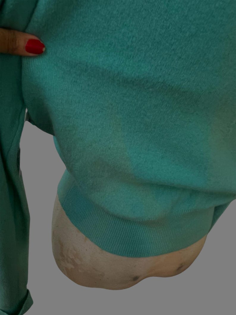 1950 Vintage Teal Blue Soft Waist Length Sweater with Embellished Bead Work