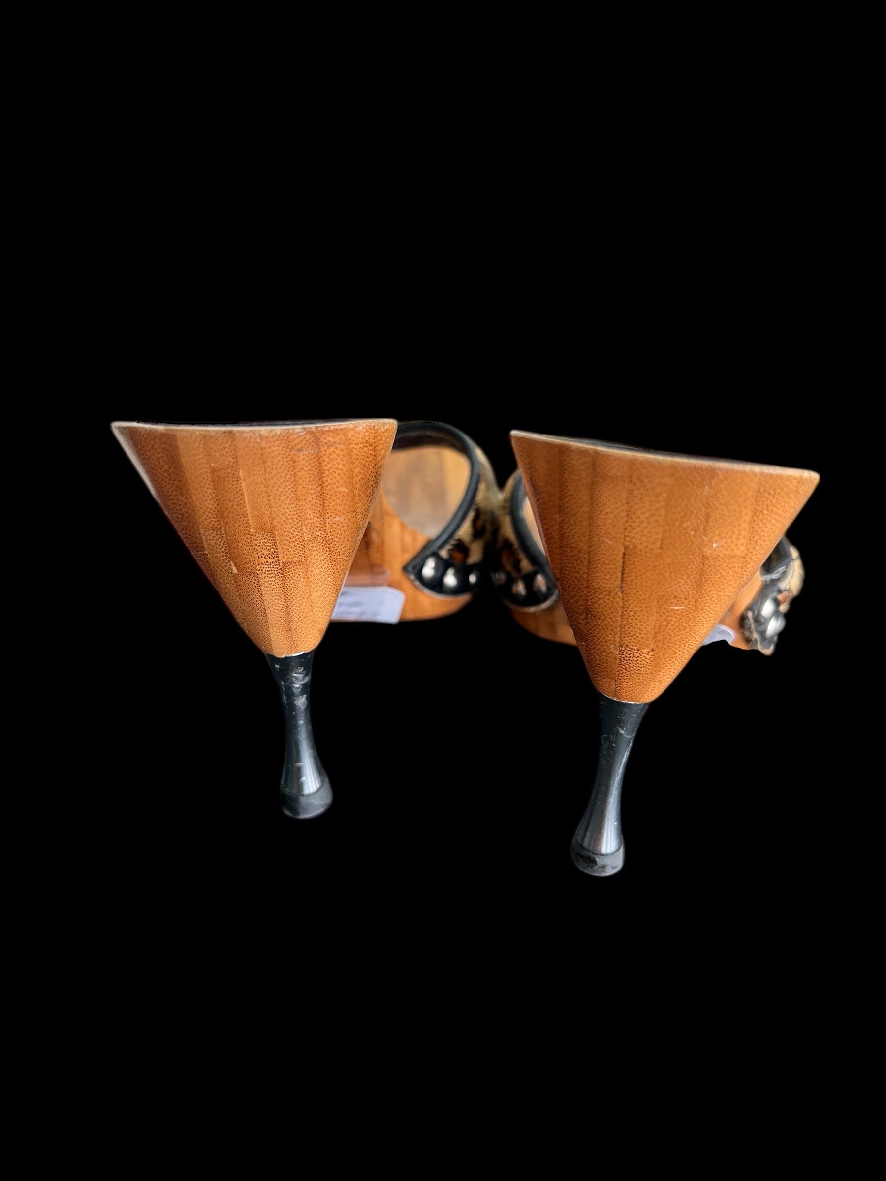 Vintage 1980's Does 60's Size 8M Stilettos Slide Leopard Print Metallic Heels